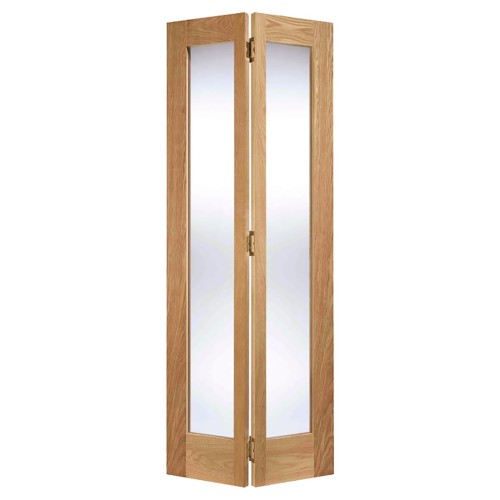 LPD Pattern 10 2 Light Clear Glazed Unfinished Solid Bi-Fold Internal Door - 1981 x 686mm - Oak