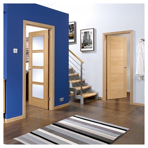 LPD Vancouver 4 Light Clear Glazed Pre-Finished Solid Internal Door - 1981 x 762 x 35mm - Oak