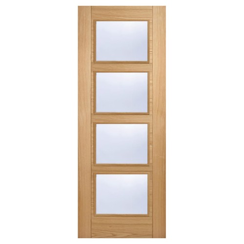 LPD Vancouver 4 Light Clear Glazed Pre-Finished Solid Internal Door - 2040 x 826 x 40mm - Oak