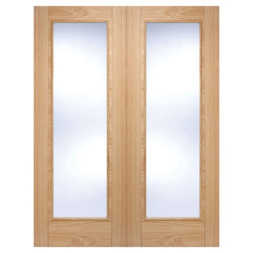 • LPD Vancouver Clear Glazed Pre-Finished Internal French Doors - 1981 x 1372 x 40mm - Oak