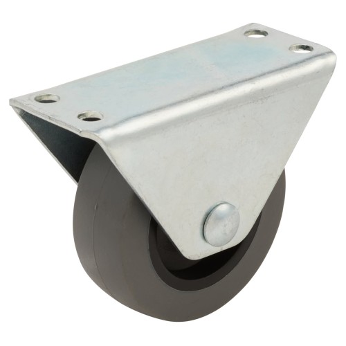 Fixed, non marking rubber wheel in a zinc plated housing, ideal for office furniture, drawers and small trolleys