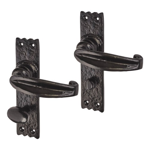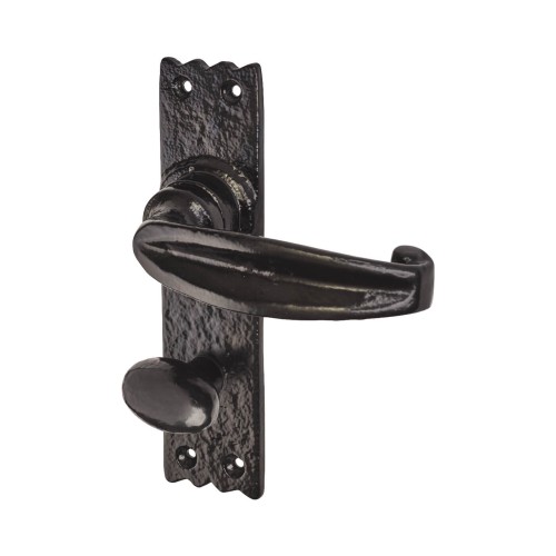 Elan Metalized Antique Black Iron Tudor Bathroom Door Handle - 152 x 38mm