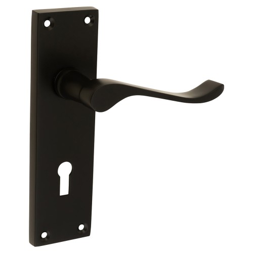 Exel Matt Black Budget Scroll Keyhole Lock Door Handle - Mia Range - 153 x 42mm
