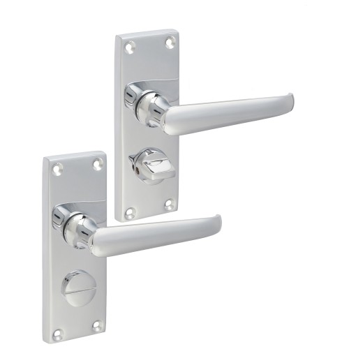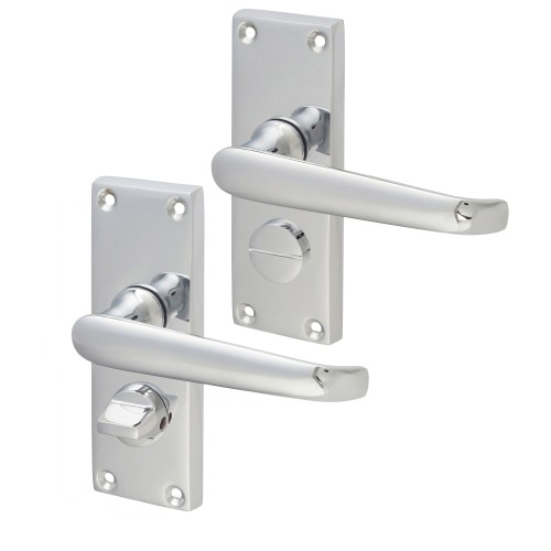 Exel Polished Chrome Victorian Straight Privacy Door Handle - Short Plate - 118 x 42mm