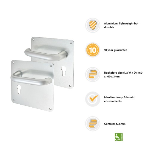 • Exel Satin Aluminium 20mm Return to Door Euro Lock Door Handle - 160 x 160mm