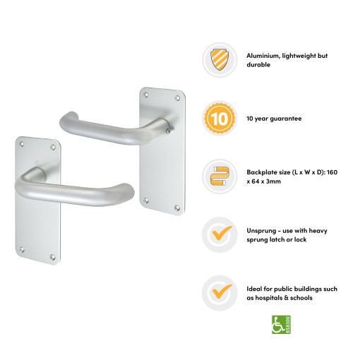 Exel Satin Aluminium 20mm Return to Door Latch Door Handle - 160 x 64mm