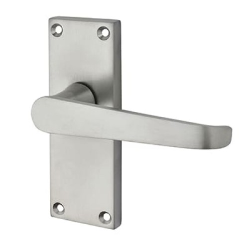 Exel Satin Chrome Budget Straight Latch Door Handle - Short Plate - Mia Range - 114 x 42mm