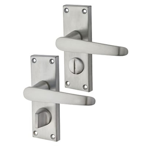 Exel Satin Chrome Budget Straight Privacy Door Handle - Short Plate - Mia Range - 114 x 42mm