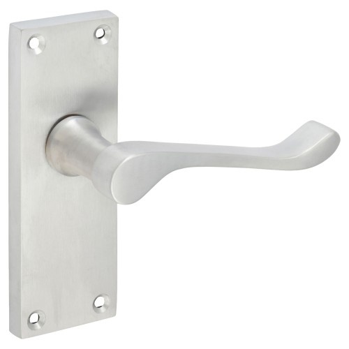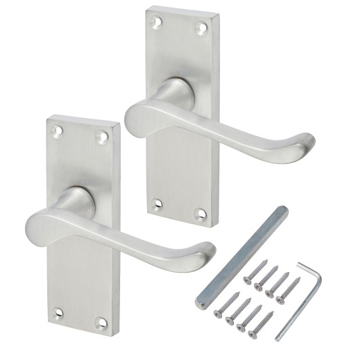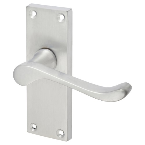 Exel Satin Chrome Victorian Scroll Latch Door Handle - Short Plate - 118 x 42mm