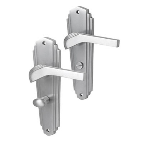 • Heritage Brass by M Marcus Satin Chrome Art Deco Bathroom Door Handle - Waldorf Range - 203 x 66mm