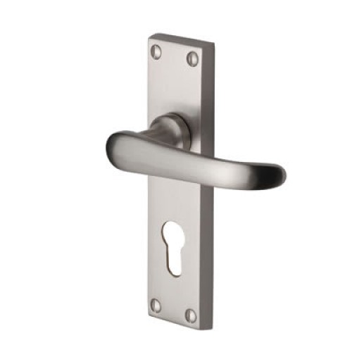 Heritage Brass by M Marcus Satin Nickel Euro Lock Door Handle - Windsor Range - 154 x 40mm