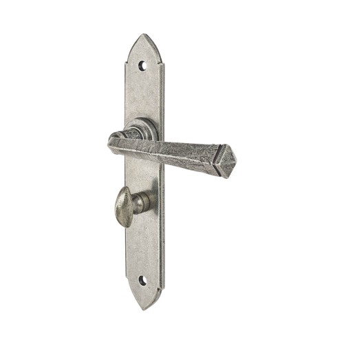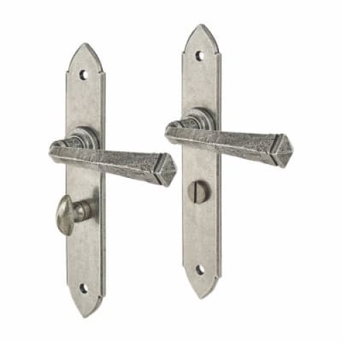 • Olde Forge Pewter Gothic Bathroom Door Handle - Long Plate - 247 x 44mm
