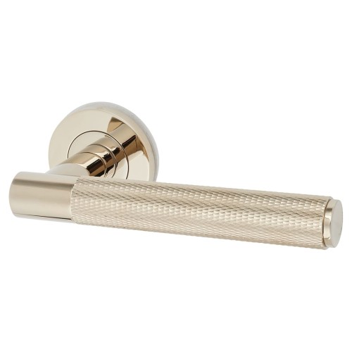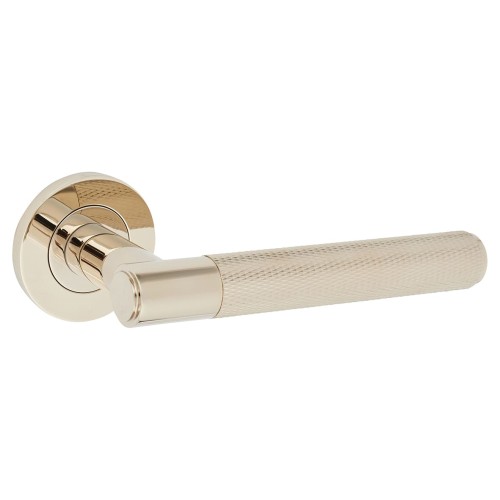 Alexander and Wilks Polished Nickel Knurled Door Handles on Round Rose - Spitfire Range