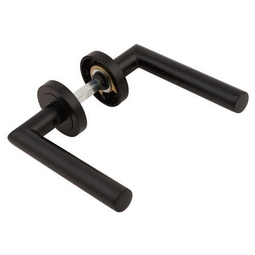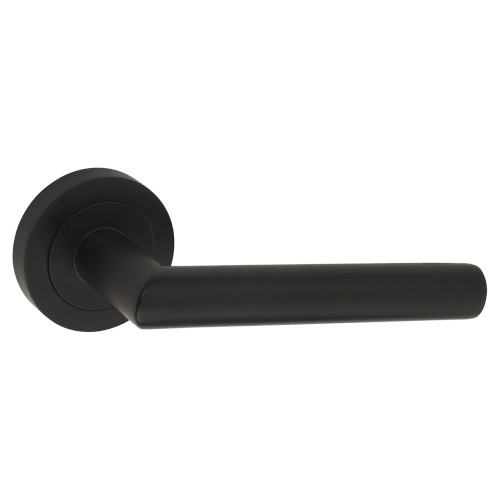 Exel Matt Black Door Handles on Round Rose - Emily Range