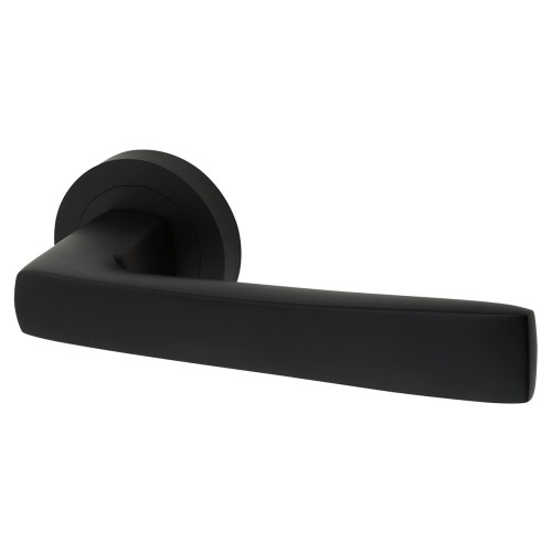 Exel Matt Black Door Handles on Round Rose - Ivy Range