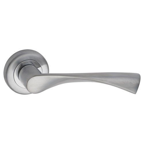 • Exel Polished/Satin Chrome Door Handles on Round Rose - Knightsbridge Range