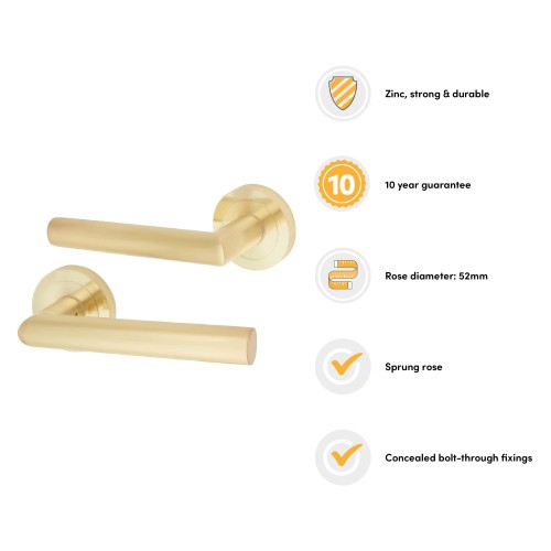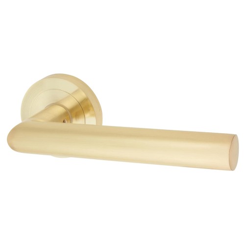 • Exel Satin Brass Door Handles on Round Rose - Emily Range