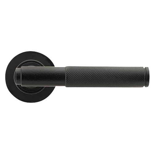 From The Anvil Matt Black Knurled Door Handles on Round Rose - Brompton Range