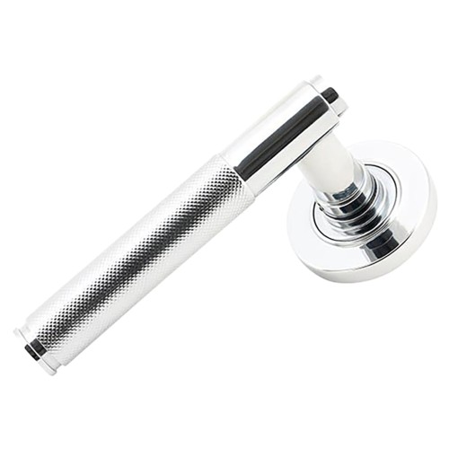 From The Anvil Polished Chrome Knurled Door Handles on Round Rose - Brompton Range