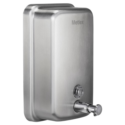 Metlex Kepler Wall Mounted Narrow Soap Dispenser - 124 x 120 x 124mm - Brushed Stainless Steel