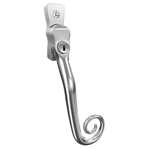 Mila Heritage Monkey Tail Locking Espagnolette Casement Window Handle - Right Hand - Satin Chrome