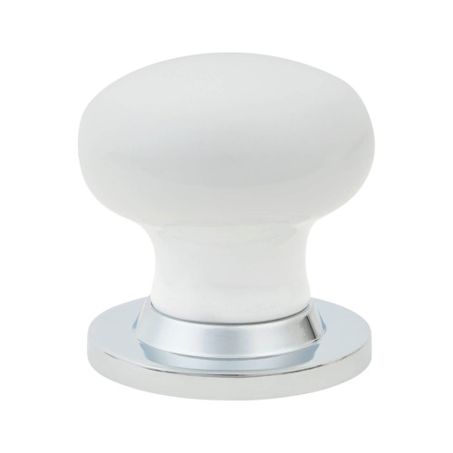 Hampstead Designer Porcelain Mortice/Rim Door Knob - 60mm Rose Diameter - White and Chrome