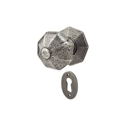 • Olde Forge Octagonal Mortice/Rim Door Knob with Escutcheon - 59mm Rose Diameter - Pewter