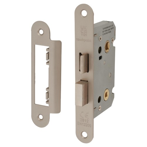 • Exel Contract Bathroom Lock - 65mm Case - 44mm Backset - Radius - Satin Nickel