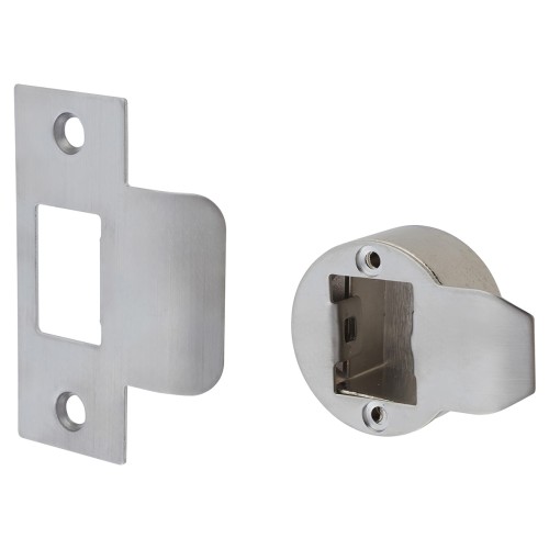 Satin nickel latch bolt to match the finish of the strike and face plate