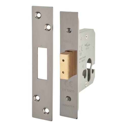 Hampstead Architectural Euro Profile Deadlock - 65mm Case - 44mm Backset - Black Nickel