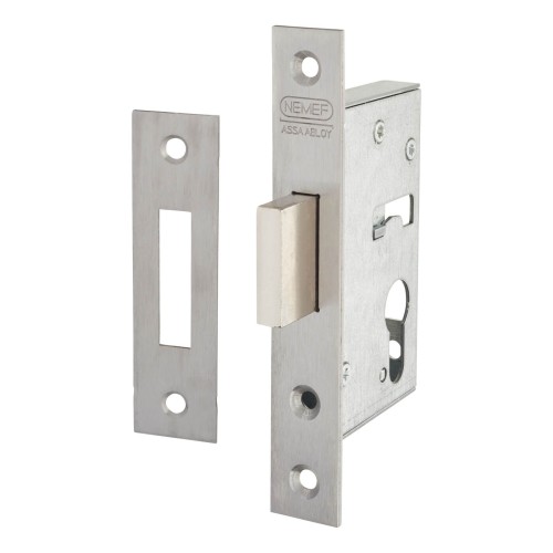 Nemef 9600 Narrow Style Euro Deadlock - 60mm Case - 45mm Backset - Satin Stainless Steel