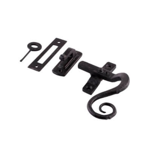 • Olde Forge Locking Mortice & Hook Plate Casement Window Fastener - Right Hand - Antique Black Iron