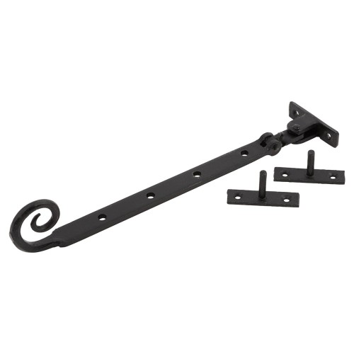 Olde Forge Monkey Tail Casement Window Stay - 10"/260mm Length - Antique Black Iron