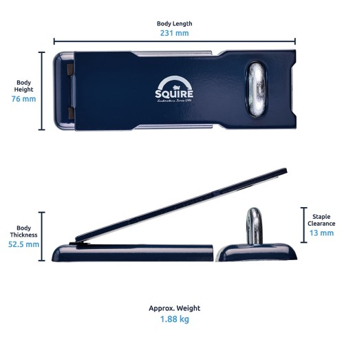 • Squire Hardened Steel High Security Hasp & Staple - 231 x 76mm - Blue