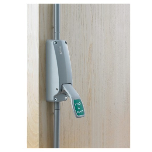 • Briton push pad emergency exit device with vertical bolts designed for use in non-public areas on escape routes by fully trained personnel