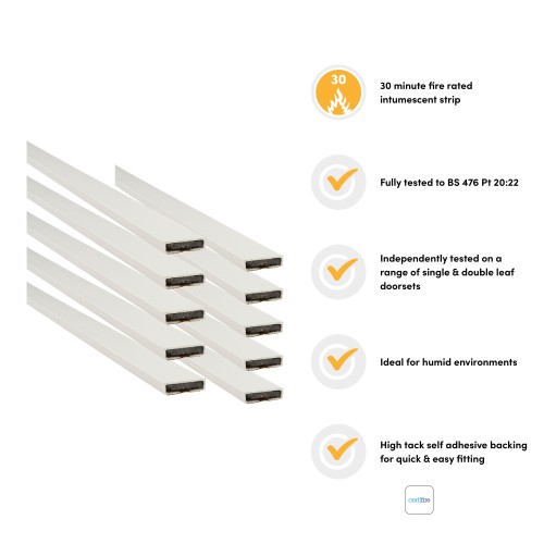 • Pyroplex Plain Fire Only Intumescent Strip - FD30/60 - 15 x 4 x 2100mm - White - Pack of 10