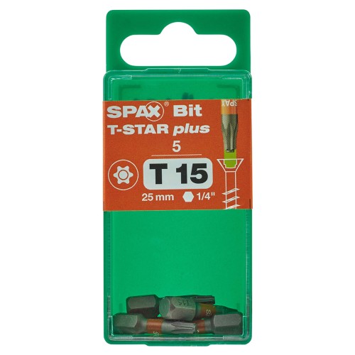 • SPAX T-Star Plus Driver Bit - Torx - T15 - 25mm Length - Pack of 5