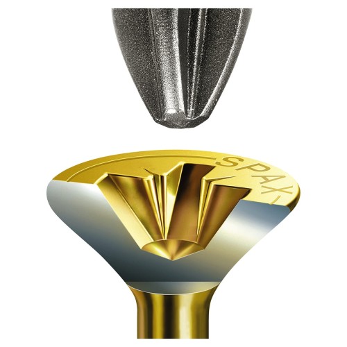 • The wood screw with a combination of 4CUT point, MULTIhead and the patented ground serrations guarantees a fast and accurate Spax drive every time