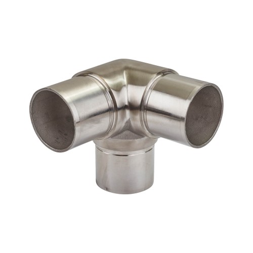 • Stainless steel 3 way elbow to connect two handrails to an upright post