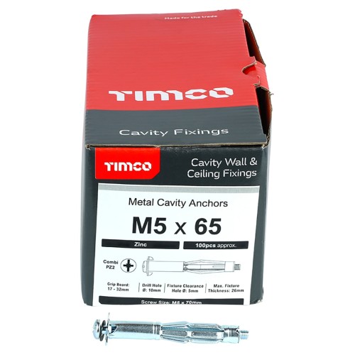• TIMCO Hollow Wall Anchor - M5 x 65mm - Pack of 100