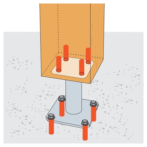 • Installed onto solid wood, glued laminated wood and concrete