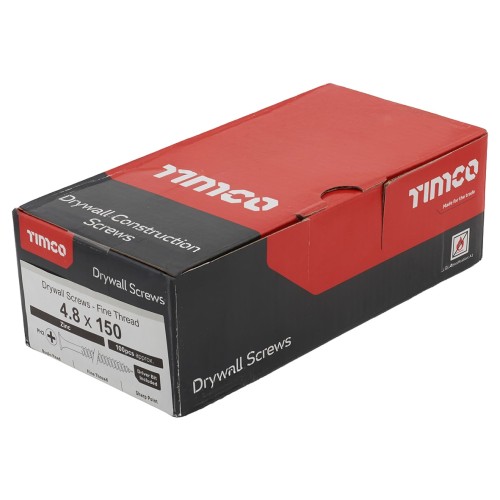 TIMCO Fine Thread Bugle Head Drywall Screws - 4.8 x 150mm - Zinc - Pack of 100