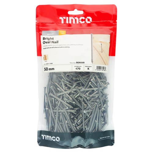 TIMCO Bright Oval Nail - 50mm Length - 1kg Pack