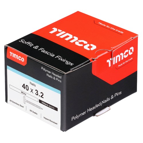TIMCO Polymer Headed Nails - 40mm Length - White - Pack of 250