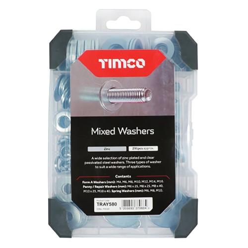 TIMCO Assorted Washers - Mixed Tray - Zinc Plated - Pack of 291