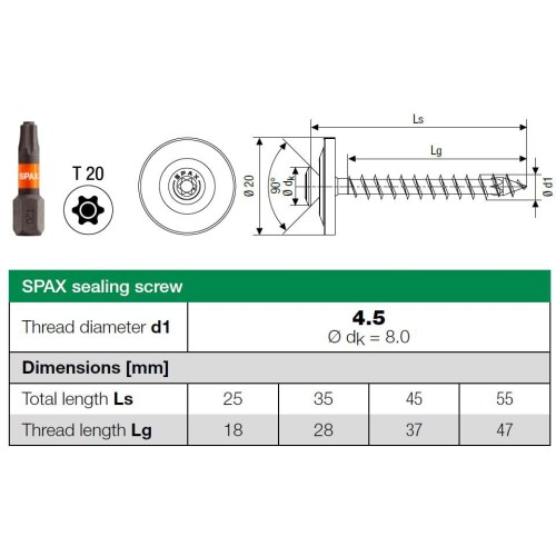 • SPAX Raised Countersunk T-Star Plus Sealing Screw - 4.5 x 25mm - A2 Stainless Steel - Pack of 75