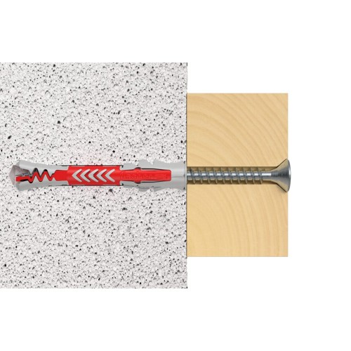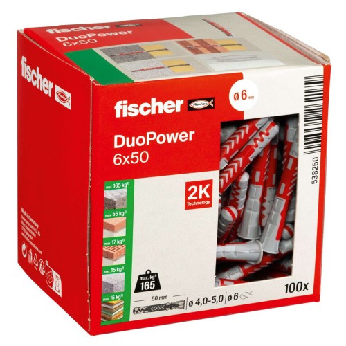 • Fischer DuoPower Long Nylon Wall Plug - 6 x 50mm - Red & Grey - Pack of 100