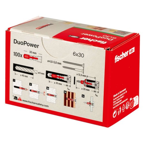 • Fischer DuoPower Nylon Wall Plug - 6 x 30mm - Red & Grey - Pack of 100