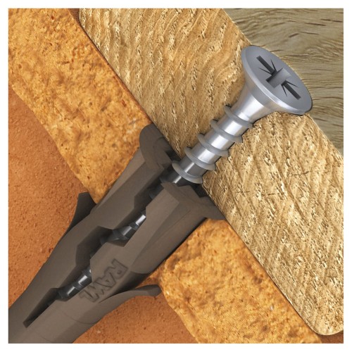 • Rawlplug UNO Wall Plug - 7 x 30mm - Brown - Pack of 1000