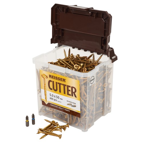 • Reisser Cutter Pozi Countersunk Wood Screws Tub - 5.0 x 50mm - Yellow Zinc - Pack of 600